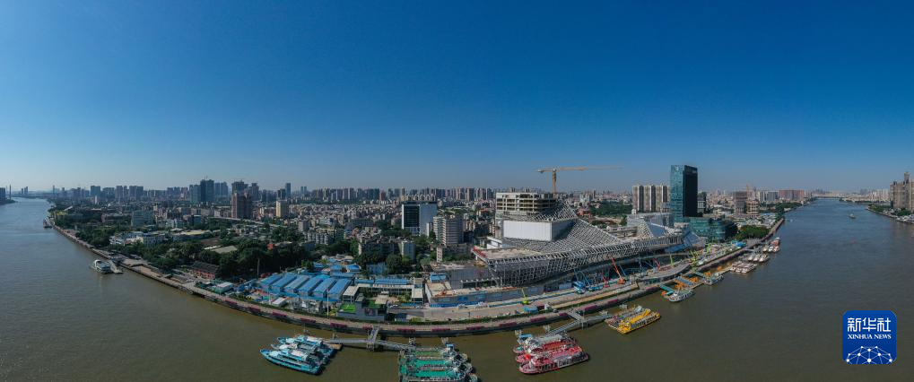 钢结构施工阶段的白鹅潭大湾区艺术中心(2022年10月12日摄)。