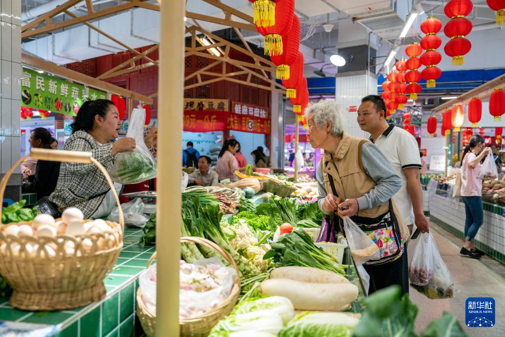 4月27日,市民在昆明市滇池路篆新滇池菜市选购食品。