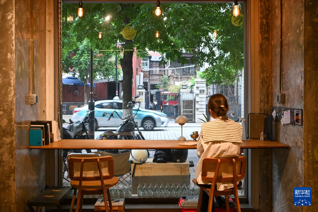 消费者在天津解放北路的一家咖啡店喝咖啡(5月5日摄)。