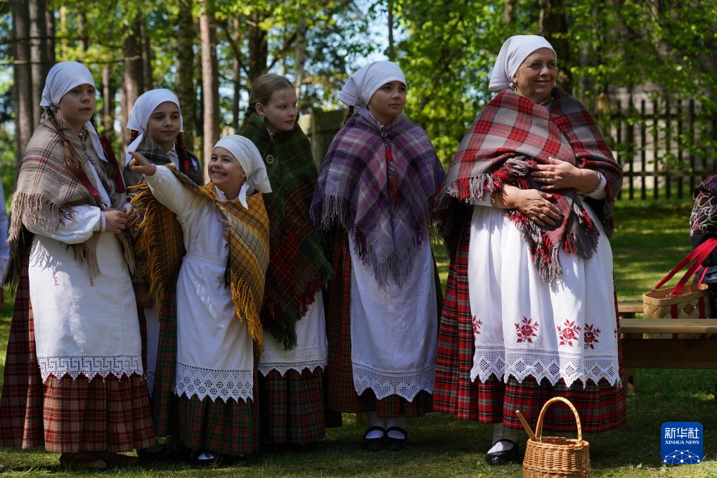 5月11日,在拉脱维亚里加市郊,人们身着民族服装参加拉脱维亚民族志露天博物馆建馆百年庆祝活动。