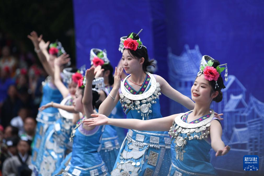 5月15日,演员在贵州省黔东南苗族侗族自治州黄平县飞云崖景区“四月八”活动开幕式上表演文艺节目。