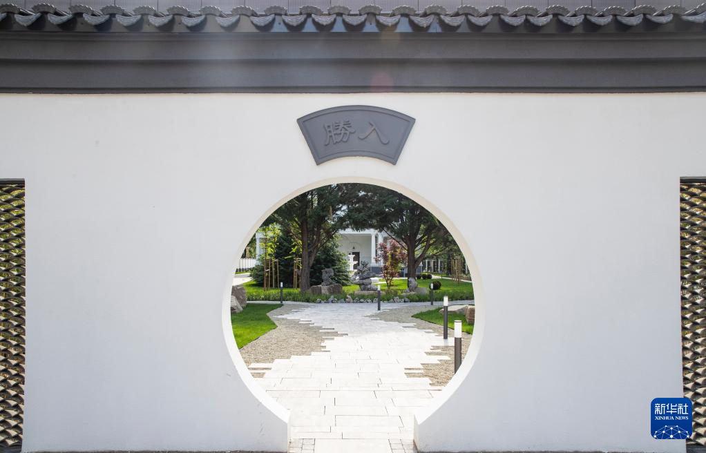 5月6日,人们走在匈牙利布达佩斯中国文化中心的花园内。