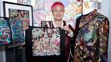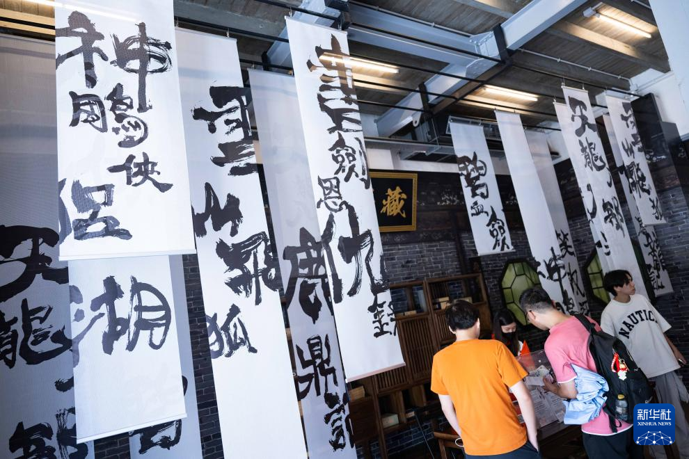 5月14日,与会者在“侠现妈阁”金庸剧集服装展及兵器展上参观。