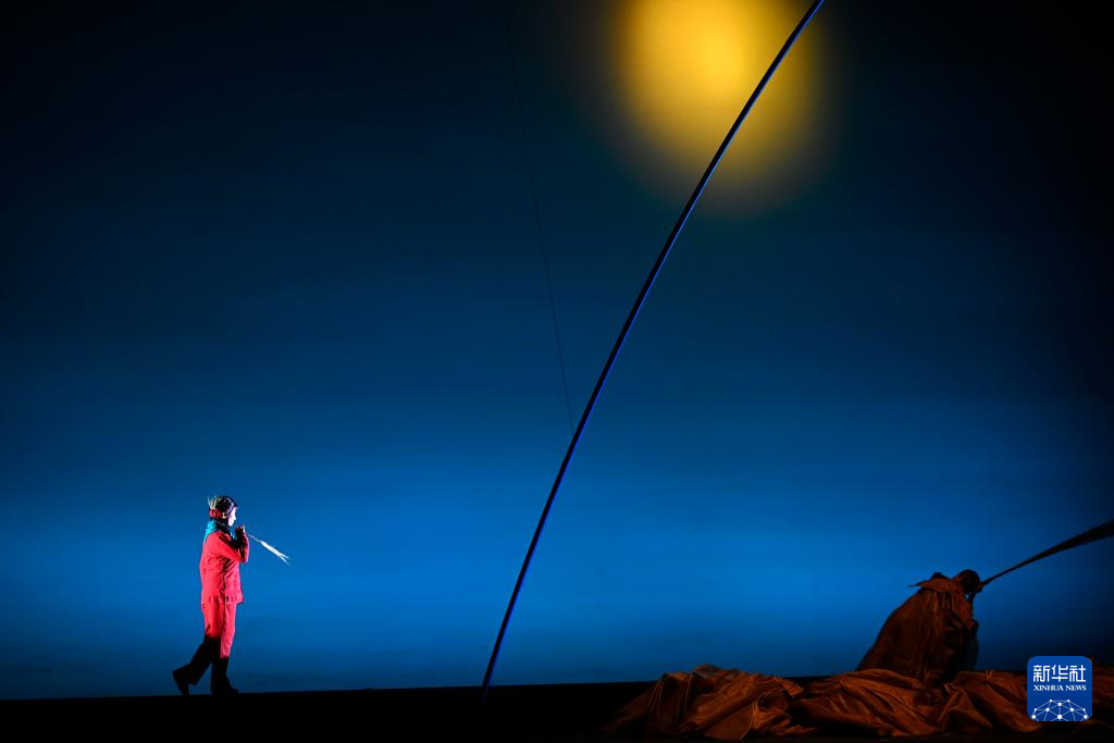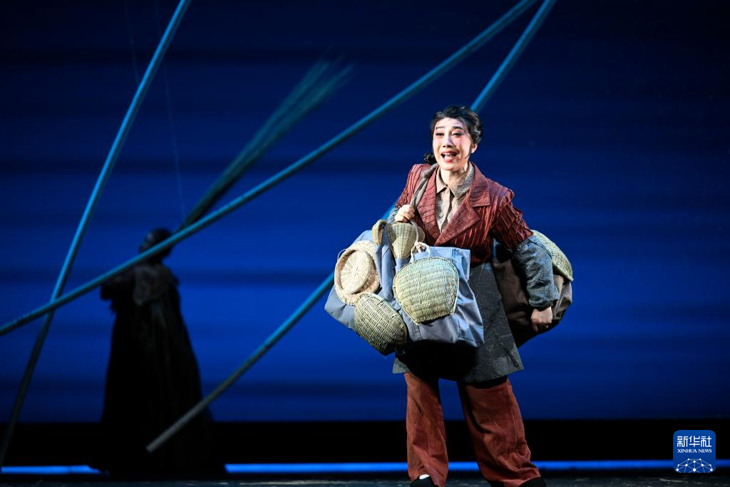 5月15日晚,在宁夏人民剧院,饰演李水河的侯艳在《攒劲女人》中表演。