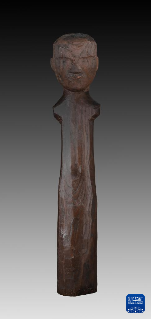 武王墩墓出土的木俑(5月14日摄)。新华社发