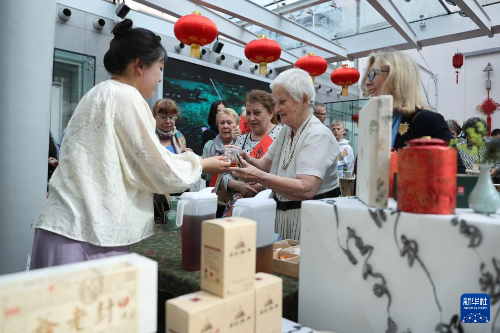 5月24日,在比利时布鲁塞尔“茶和天下·雅集”云南茶文化交流活动上,人们举杯品茶。