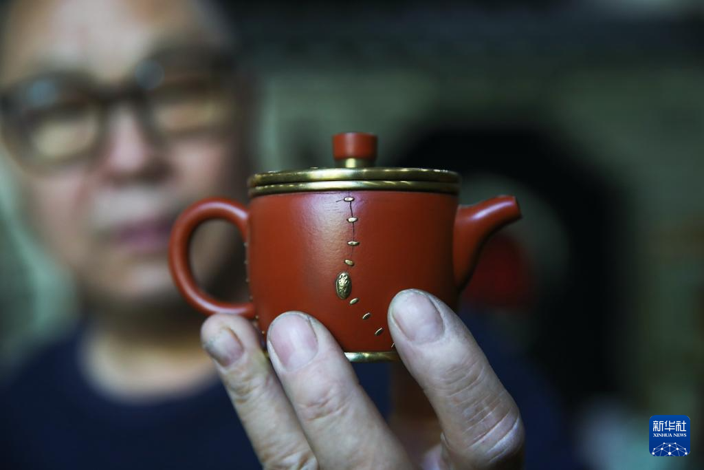 杨涛锔瓷修复的茶壶(5月8日摄)。