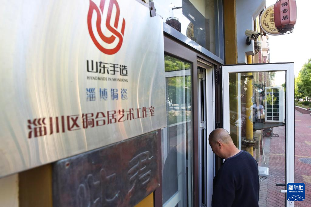 杨涛走进位于淄川的工作室(5月8日摄)。