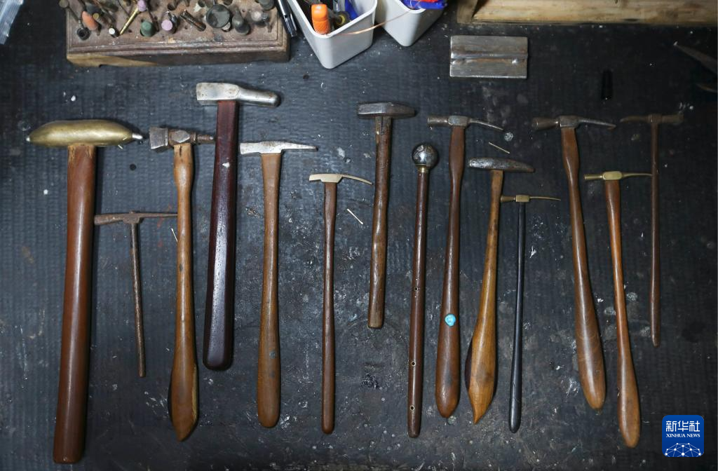 杨涛锔瓷修复用的各种锤子(5月8日摄)。