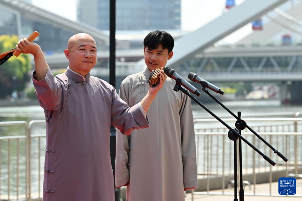 6月6日,相声演员在活动中表演节目。当日,天津市红桥区在三岔河口亲水平台举办“乐享端午”演出活动。