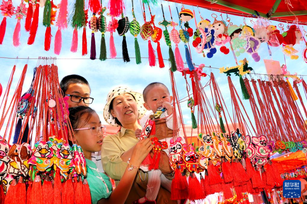 6月9日,人们在甘肃省平凉市静宁县城关镇端午市场上选购香包。