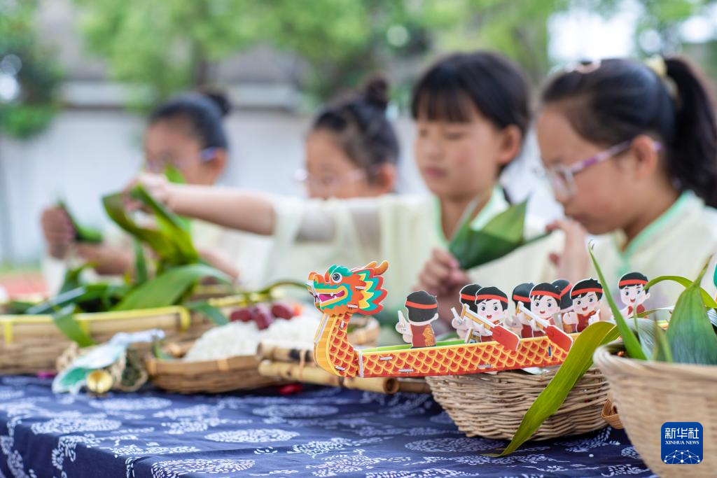 端午佳节,人们包粽子、赛龙舟、束艾草、点雄黄,在多彩民俗活动中欢聚一堂、共度佳节。