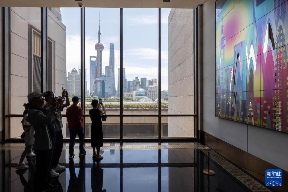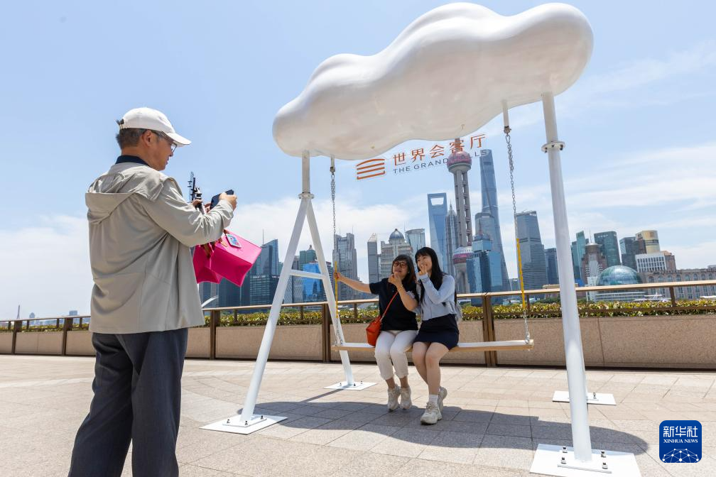6月16日,市民在上海世界会客厅拍照留影。
