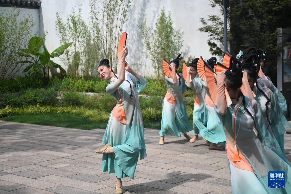 6月16日,北京舞蹈学院学生在资华筠舞蹈艺术馆外表演舞蹈《醉春风》。