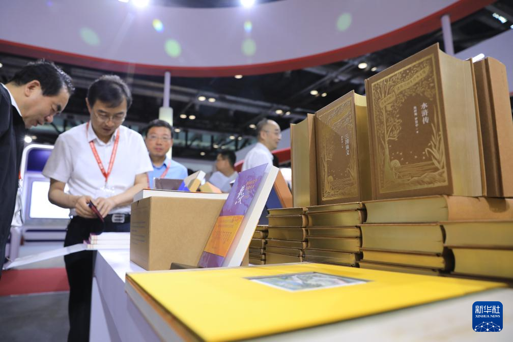 6月19日在第三十届北京图博会上拍摄的“中国作家馆”展出图书。