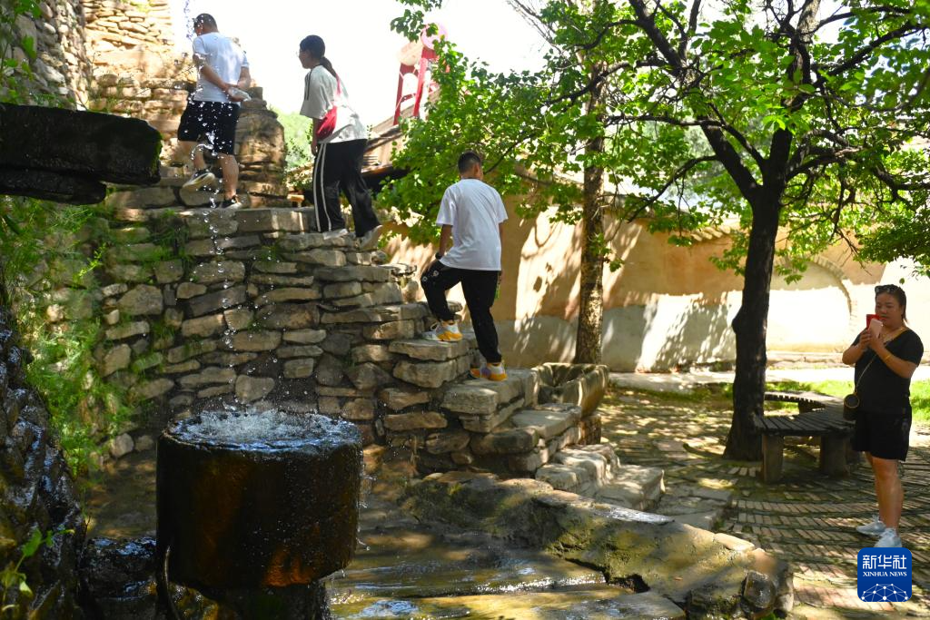 7月30日,游客参观红崖老巷子滴水泉。