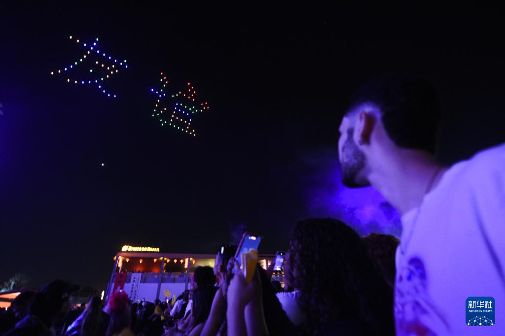 8月17日,在巴西首都巴西利亚,人们在沙滩艺术节中国日活动上观看无人机表演。