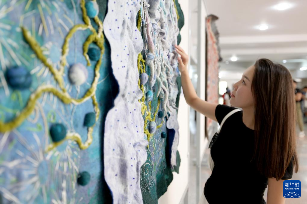 当日,吉尔吉斯斯坦首都比什凯克举办传统毛毡制品设计展,通过丰富多样的展品体现民族传统风格与现代理念的交融。