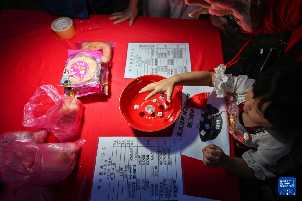 9月14日,在福建厦门一小区内,居民一起参加博饼比赛。