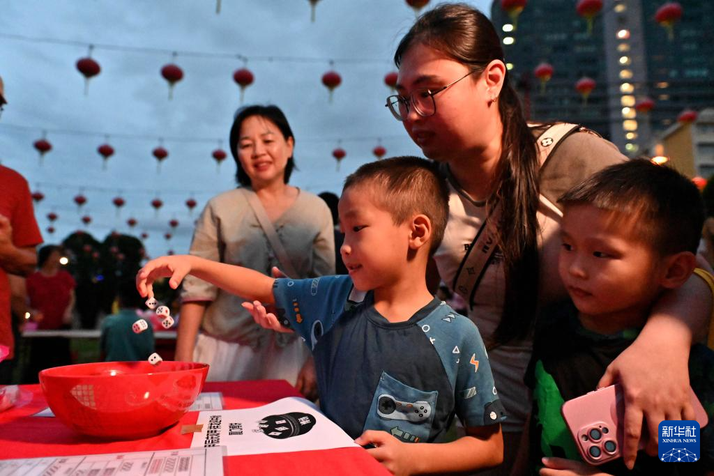 中秋临近,在福建厦门和马来西亚巴生举办的中秋庆祝活动上,博饼游戏都吸引了不少人参与。在游戏中,人们通过掷骰子赢取各式各样的饼及生活用品。饼为圆形,人们玩博饼游戏时围在一起,取中秋团圆之意。