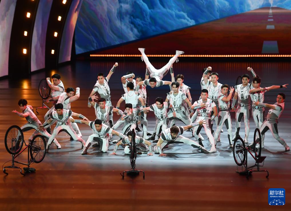 9月19日,演职人员在北京文化论坛专场文艺演出中表演杂技。