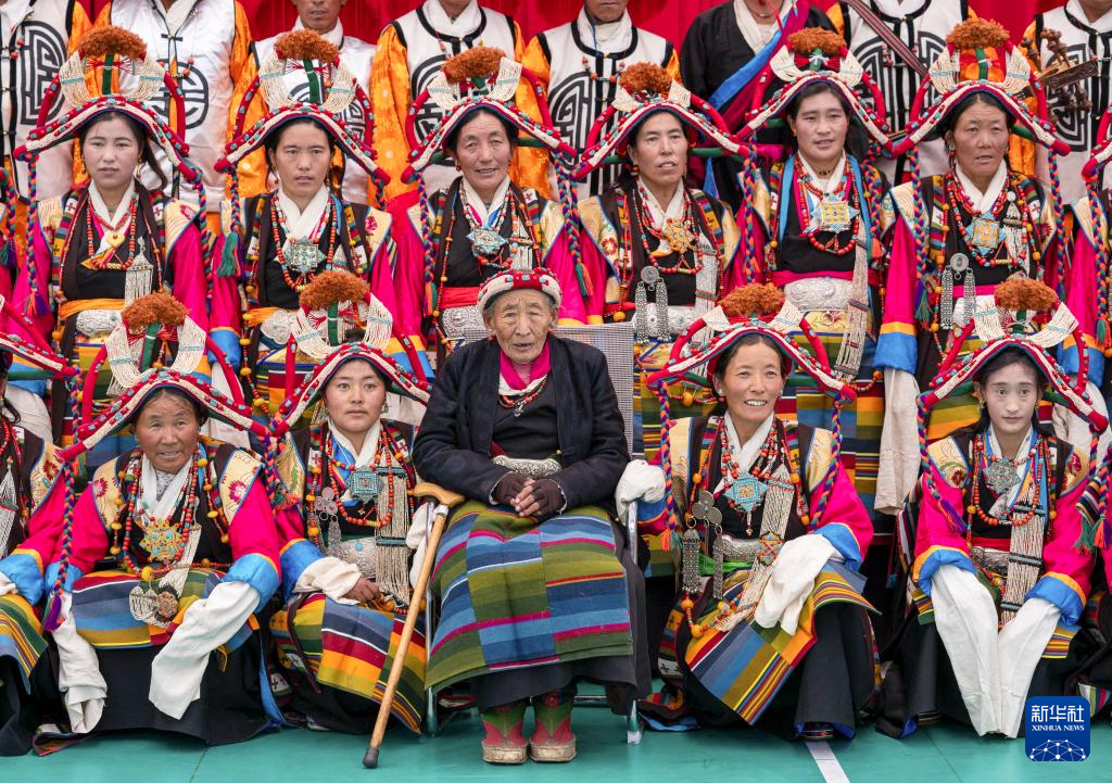 这是在西藏日喀则市定结县拍摄的穿戴传统服饰的“萨尔谐钦”演职人员(9月25日摄)。