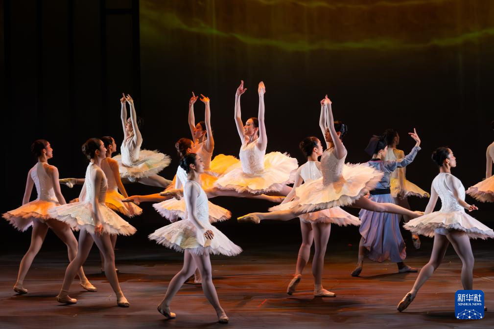一群穿着白色芭蕾舞裙的姑娘们踮起脚尖,以纯正的芭蕾舞步穿行在身着书生长衫的梁山伯与祝英台中间。这段描述他们同窗三载时光流逝的段落,给许多观众留下了深刻印象。