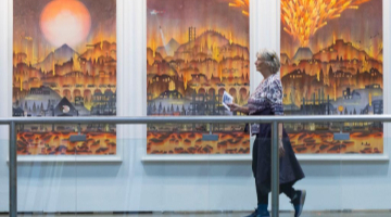 10月29日,观众在太原北齐壁画博物馆选购文创产品。