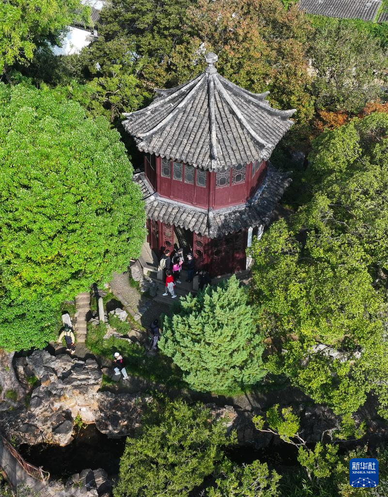 游人在留园参观游览(10月23日摄,无人机照片)。