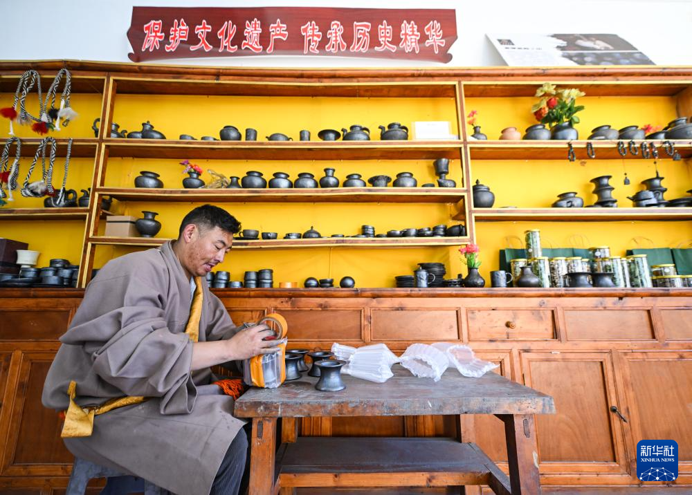 根呷火热在复检即将发往外地的黑陶产品(11月3日摄)。在四川省甘孜藏族自治州德格县麦宿镇,根呷火热忙着制作成都一家餐饮企业的黑陶订单。今年39岁的根呷火热是四川省级非遗麦宿黑陶的传承人,也是麦宿当地黑陶工坊的创始人。捣土、塑形、风干、烧制……在传承与创新中,根呷火热不断钻研,让手工艺品从雪域深山走向省内外消费市场。