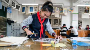 11月18日,在甘肃省陇南市宕昌县哈达铺镇上街村,学生们穿过红军门进入红军街去上学。