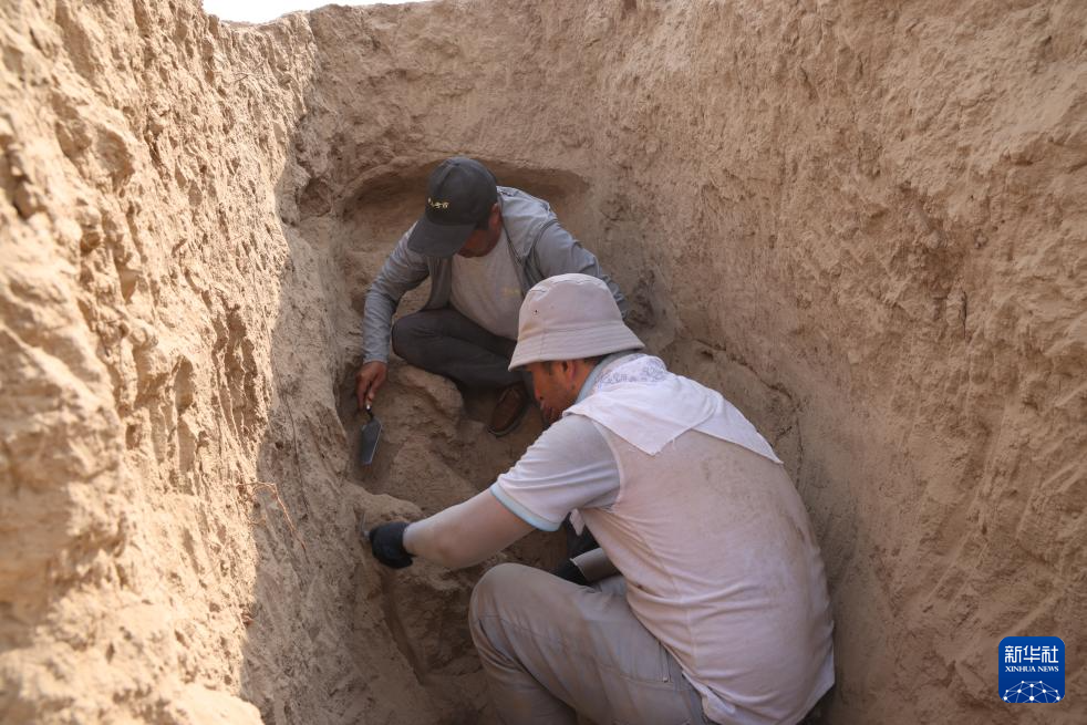 据悉,1986年,蒙扎铁佩遗址所处区域发现并发掘了9座大型洞室墓,出土了用苇杆束编制的带盖芦苇棺和多具保存较完好的人骨,墓葬随葬品种类丰富,出土了五颜六色的丝绸服装残块,在个别棺材中还发现了项链、耳环等饰品。研究表明,这批墓葬的年代大约为5至8世纪。本年度的发掘目的在于进一步确认蒙扎铁佩墓葬区的范围、墓葬的分布规律,并重新梳理墓葬结构和随葬品等细部特征和年代信息。