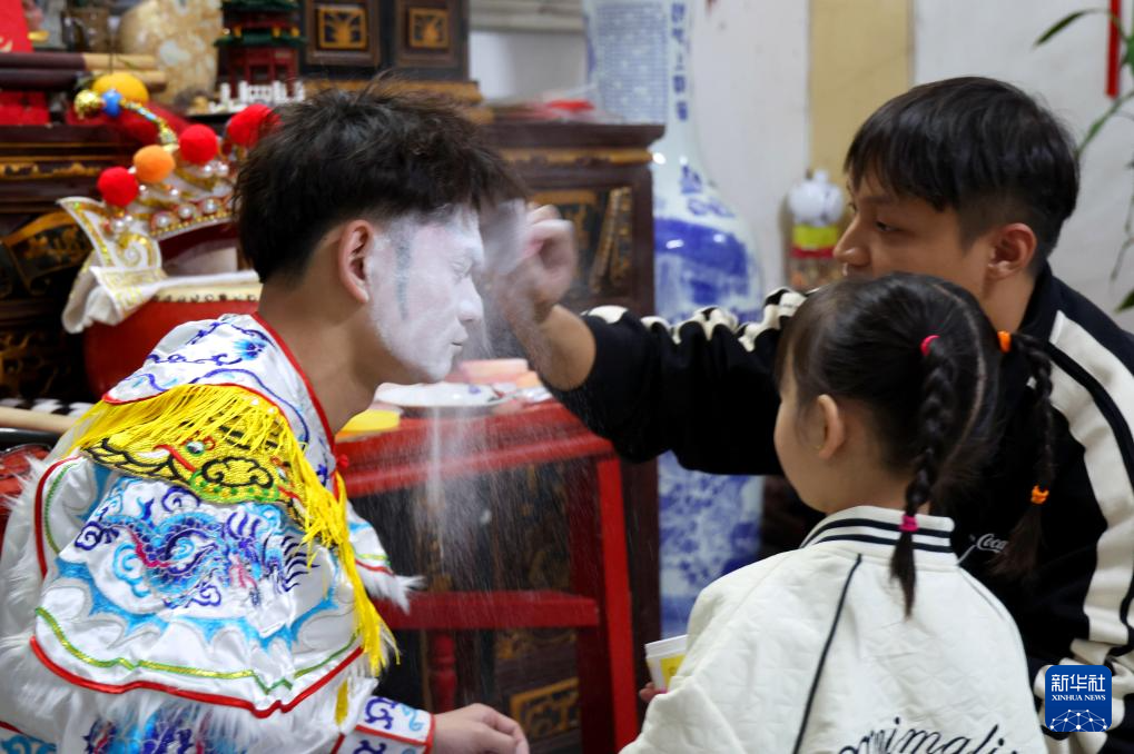 12月9日,庄恩琪帮爸爸吹掉脸上的定妆粉。