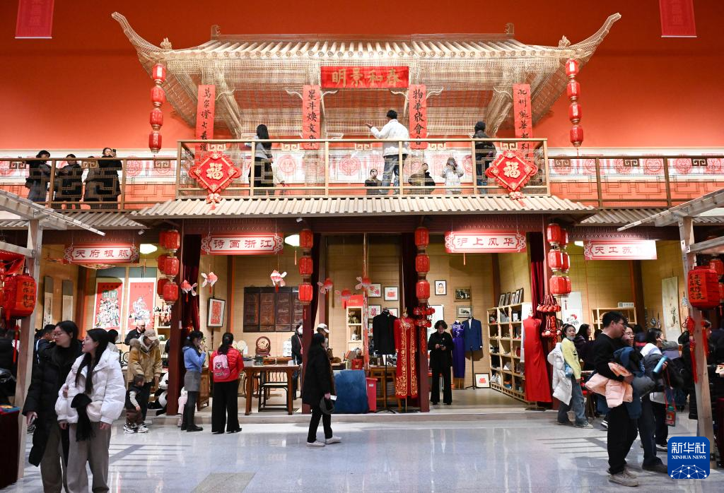 12月21日,观众在展厅内沉浸式体验“热闹街市”。