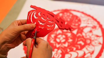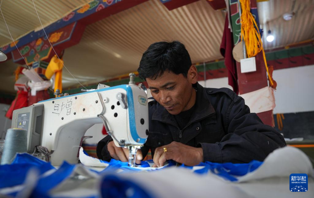 布达拉宫管理处维修科工作人员仁青在缝制门帘(12月4日摄)。
