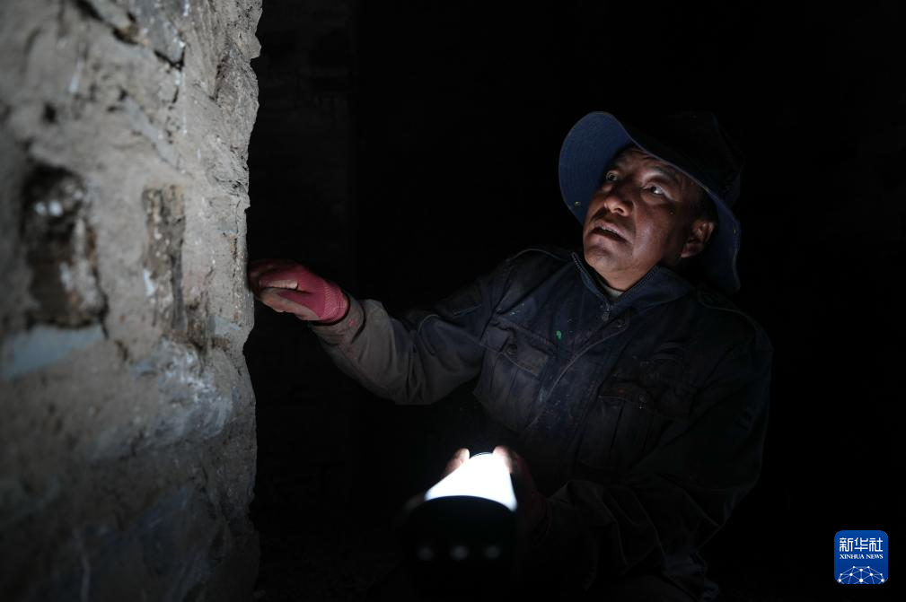 布达拉宫管理处维修科工作人员扎西在巡查布达拉宫地垄(12月4日摄)。