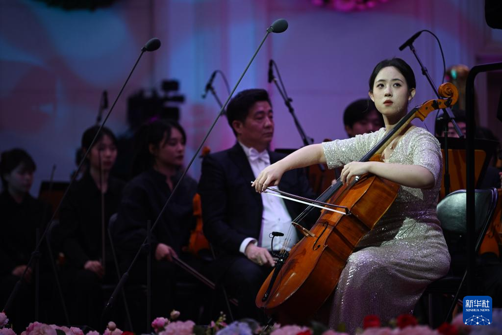 1月2日,演员在音乐会上演奏《春风春潮》。