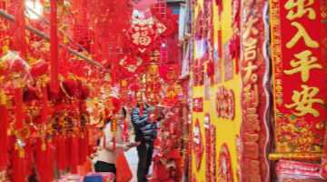 1月7日,在哈尔滨市兆麟公园,游客在观赏冰灯。