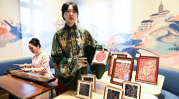 1月13日,参观者在新落成的长安书院内参观文创产品。