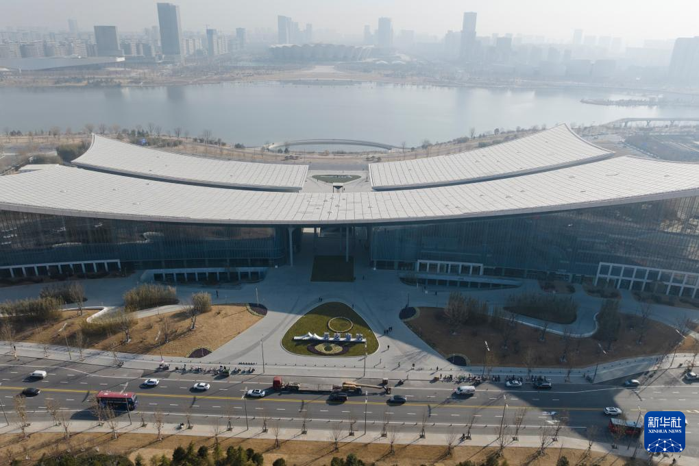 1月1日拍摄的新落成的长安云“一带一路”城市展示体验中心(无人机照片)。