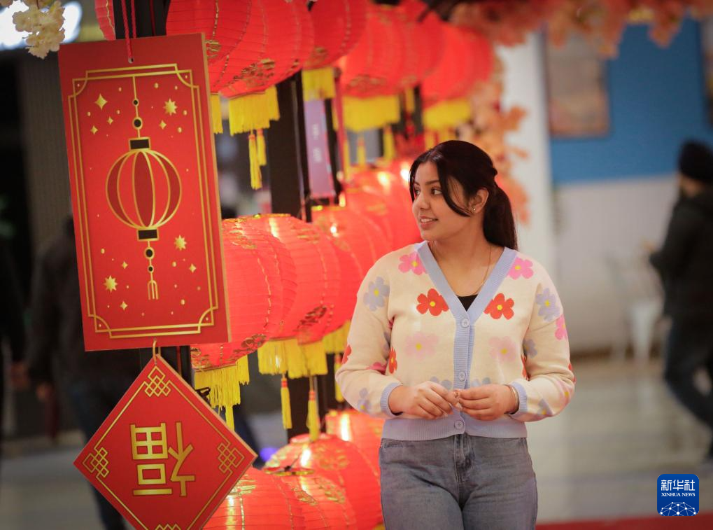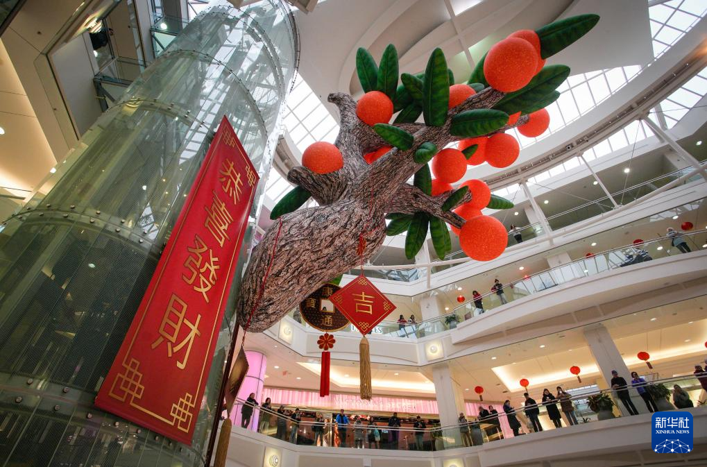 1月13日,加拿大温哥华的一家商场内布置了春节主题装饰。