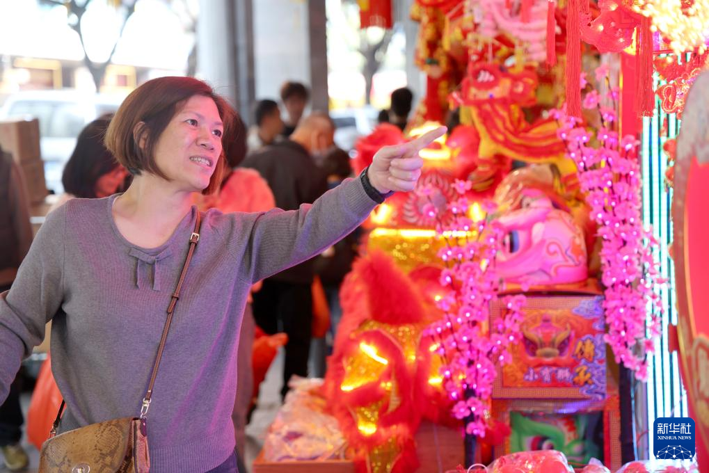 1月20日,市民在广州市一德路市场选购春节饰品。