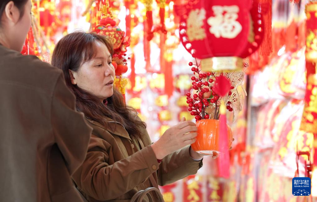春节临近,年味渐浓,大街小巷张灯结彩,热闹的集市吸引人们前来选购年货。