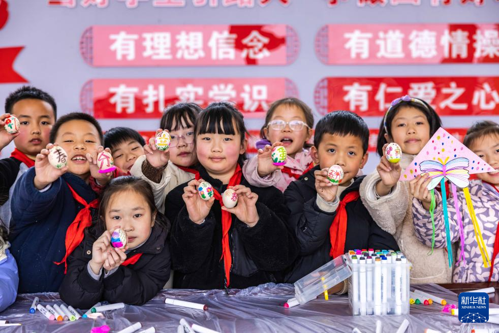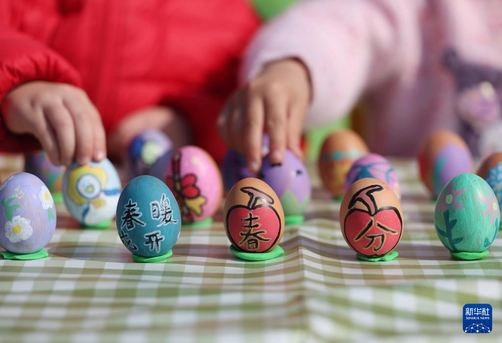 3月20日,天津市滨海新区塘沽实验小学的学生们绘彩蛋,了解春分节气习俗。
