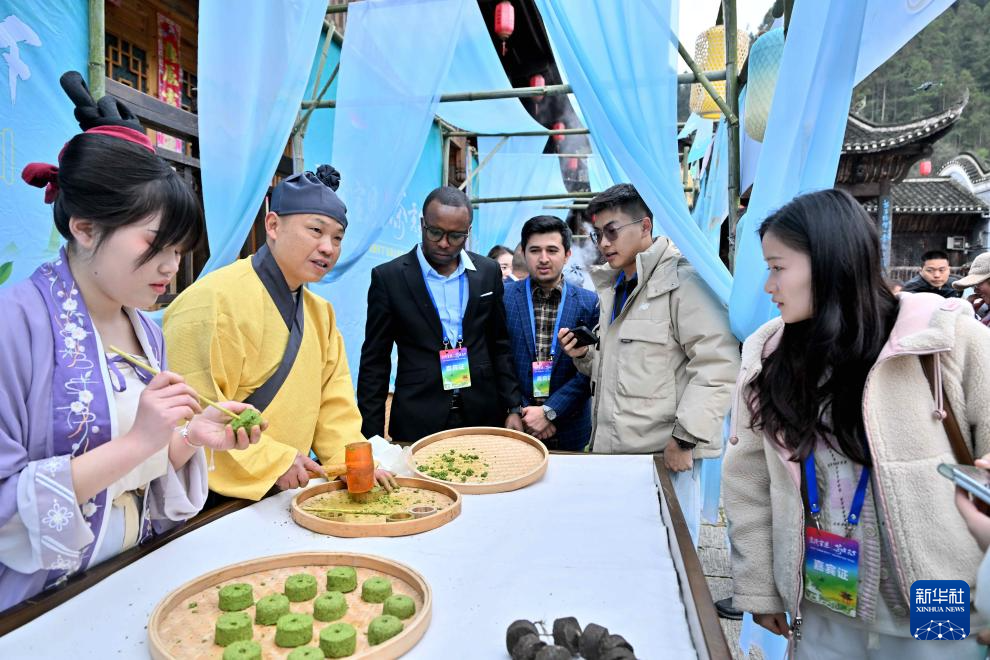 当日,湖北省恩施土家族苗族自治州宣恩县梦回“茶马古道”春茶品鉴活动启幕,“宋风雅集”茶市、茶园服装秀、茶山非遗展演等系列活动,吸引众多游客参与其中品味春茶,沉浸式感受茶乡的魅力。