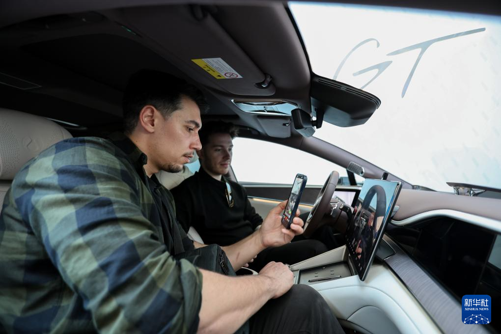4月11日,在意大利米兰,参观者体验比亚迪旗下中国汽车品牌腾势推出的智能豪华旗舰车型Z9GT。