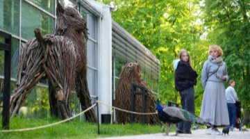 2024年4月30日,在沈阳故宫,来自俄罗斯的芭蕾舞演员与沈阳京剧院的演员互动。