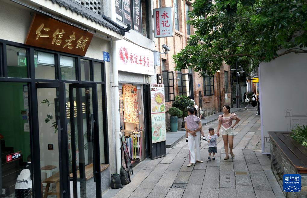 游客在永庆坊参观、休闲(7月11日摄)。