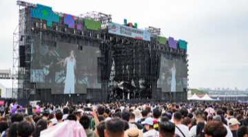 7月16日,群众在南木林县非遗公园内观看藏戏表演。
