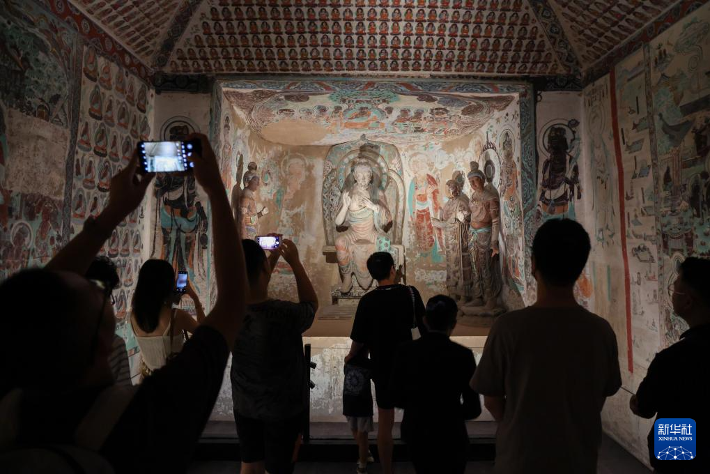 7月25日,观众在“大成敦煌——敦煌文化艺术大展”现场参观。